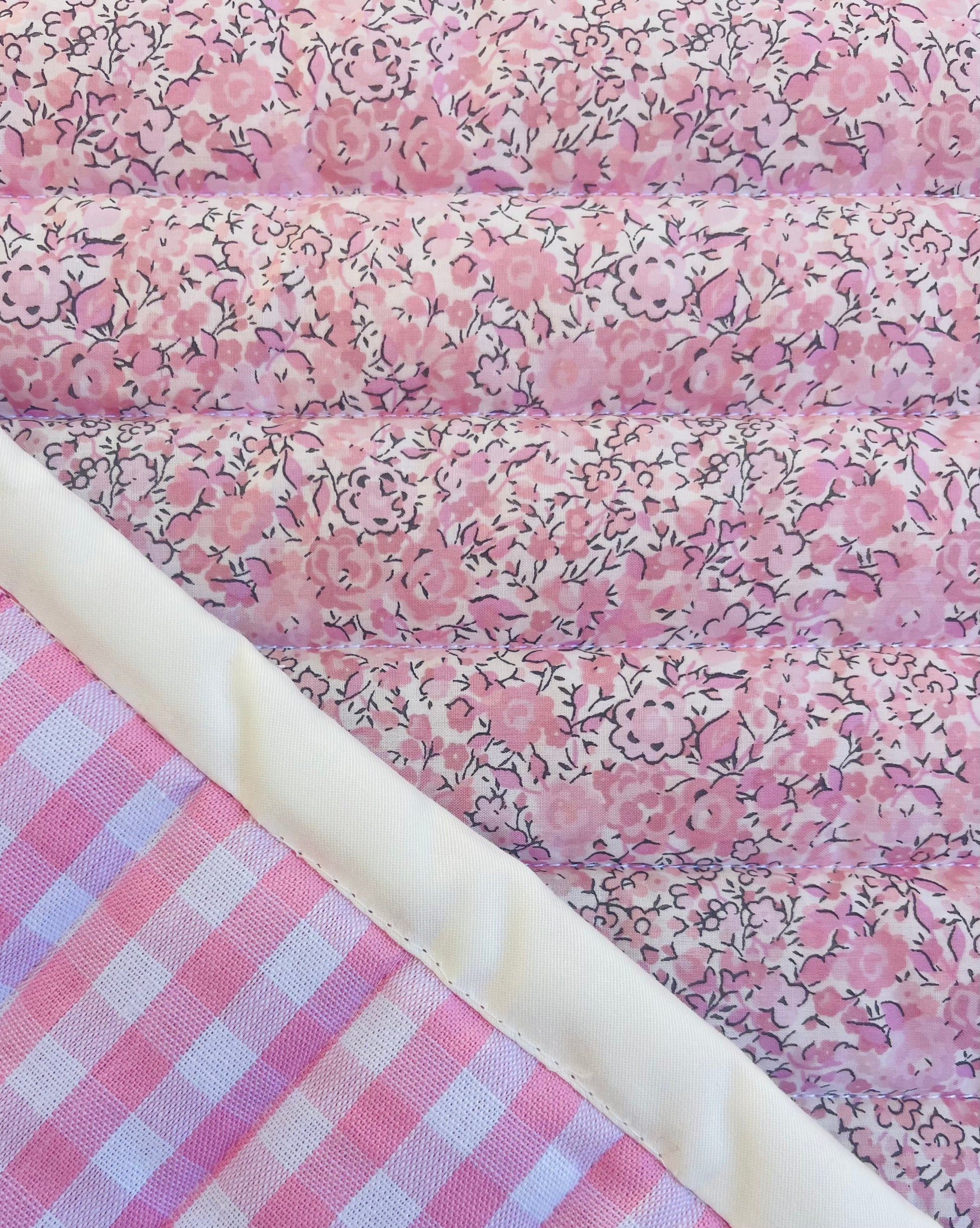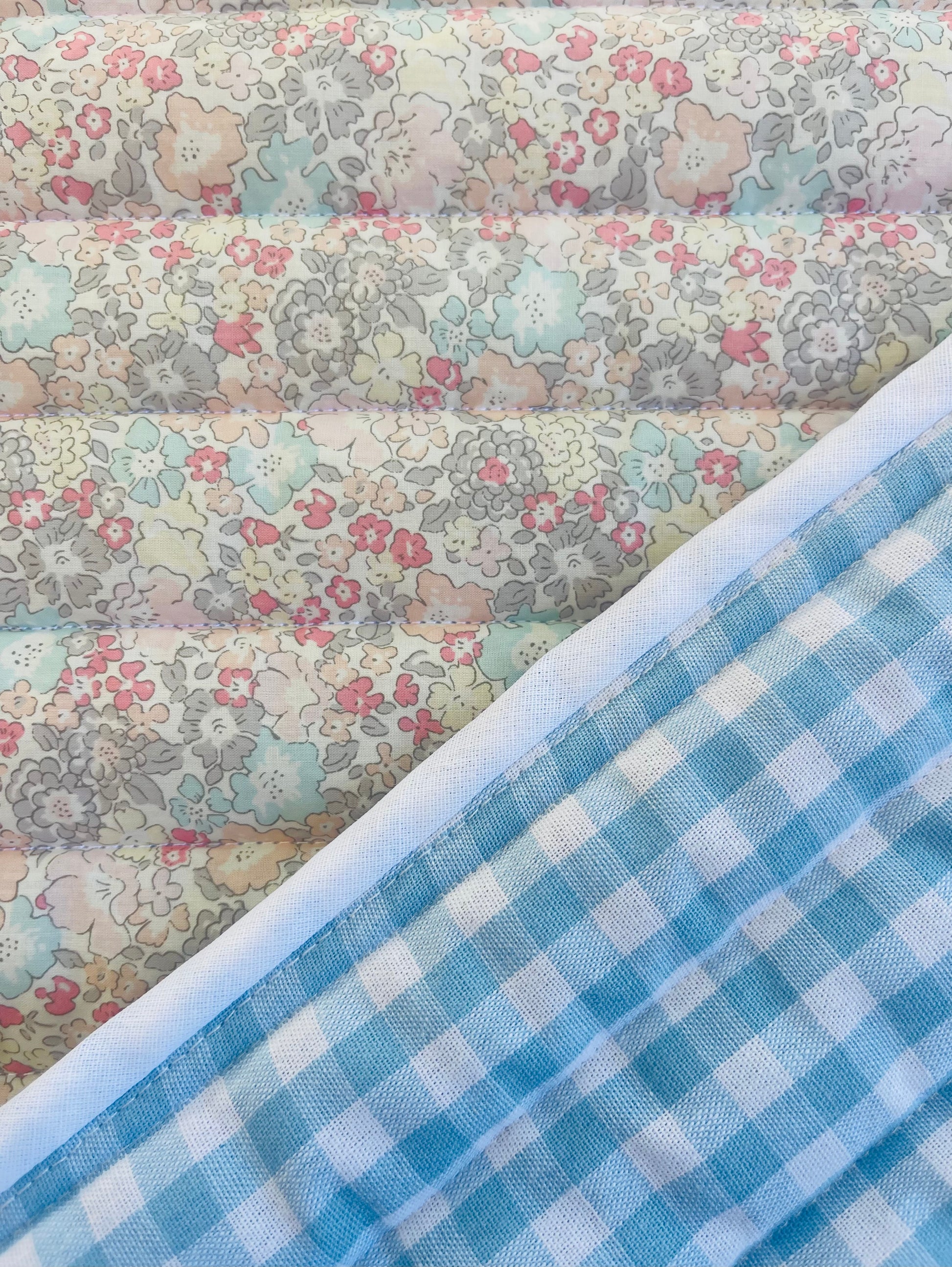 Reversible playmat/picnic blanket. Liberty and gingham. 100 x 120cm